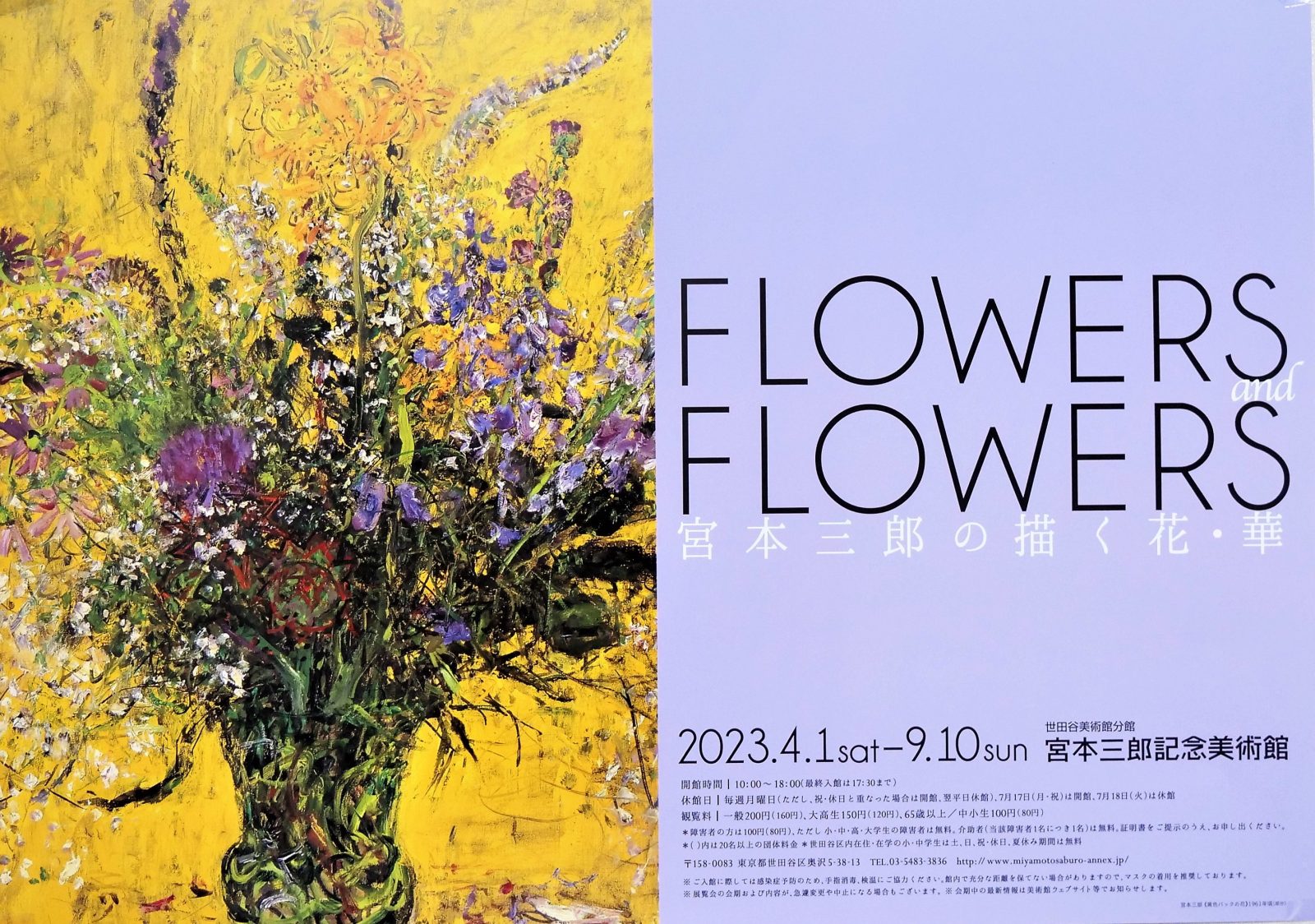 ネットで検索すると東急東横線自由が丘にある宮本三郎記念美術館で花の絵を中心とする展覧会が開催されていたので行ってみた。宮本三郎は戦時中、藤田嗣治らと並んで戦争画を数多く描いたことで知られるが、戦後はフォービズムの作風で裸婦や人物、花など実に数多くの作品を描いたことで知られる。晩年の青や黄色、赤、ピンクなど強烈な色彩をぶつけた作風はあまり好みではないが、花の作品群は圧倒的だった。