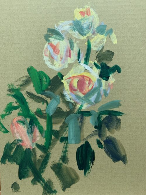 昨日の雨とはうって変わって今日はまるで夏のような暑さ。町田のバラ広場が開いていると聞いたので行きたいと思ったが、片道2時間、往復で4時間かかってしまうので暑さとコロナの状況を考えて思いとどまった。代わりに自宅の白いバラを厚紙に描いた。バラ園の豪華なバラは魅力的だが、自宅に咲くバラも十分美しい。サンテグジュペリの気分。